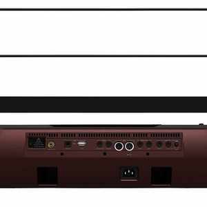 - Anschlüsse: Dämpferpedal, Programmierbarer Schalter / Pedal, Audio Ausgang L / R, Kopfhörerausgang, Line In, Mic / Guitar In, MIDI IN / OUT, 2 x USB Typ A, 1 x USB Typ B, Video Out, Netzanschluss