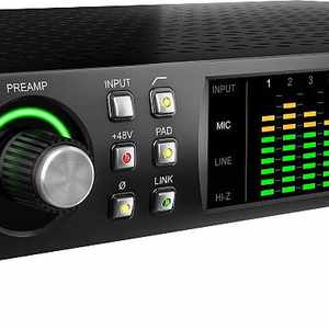 - Vier Unison-Mikrofonvorverstärker für die Aufnahme durch Preamp Emulationen von Neve, API und Universal Audio
