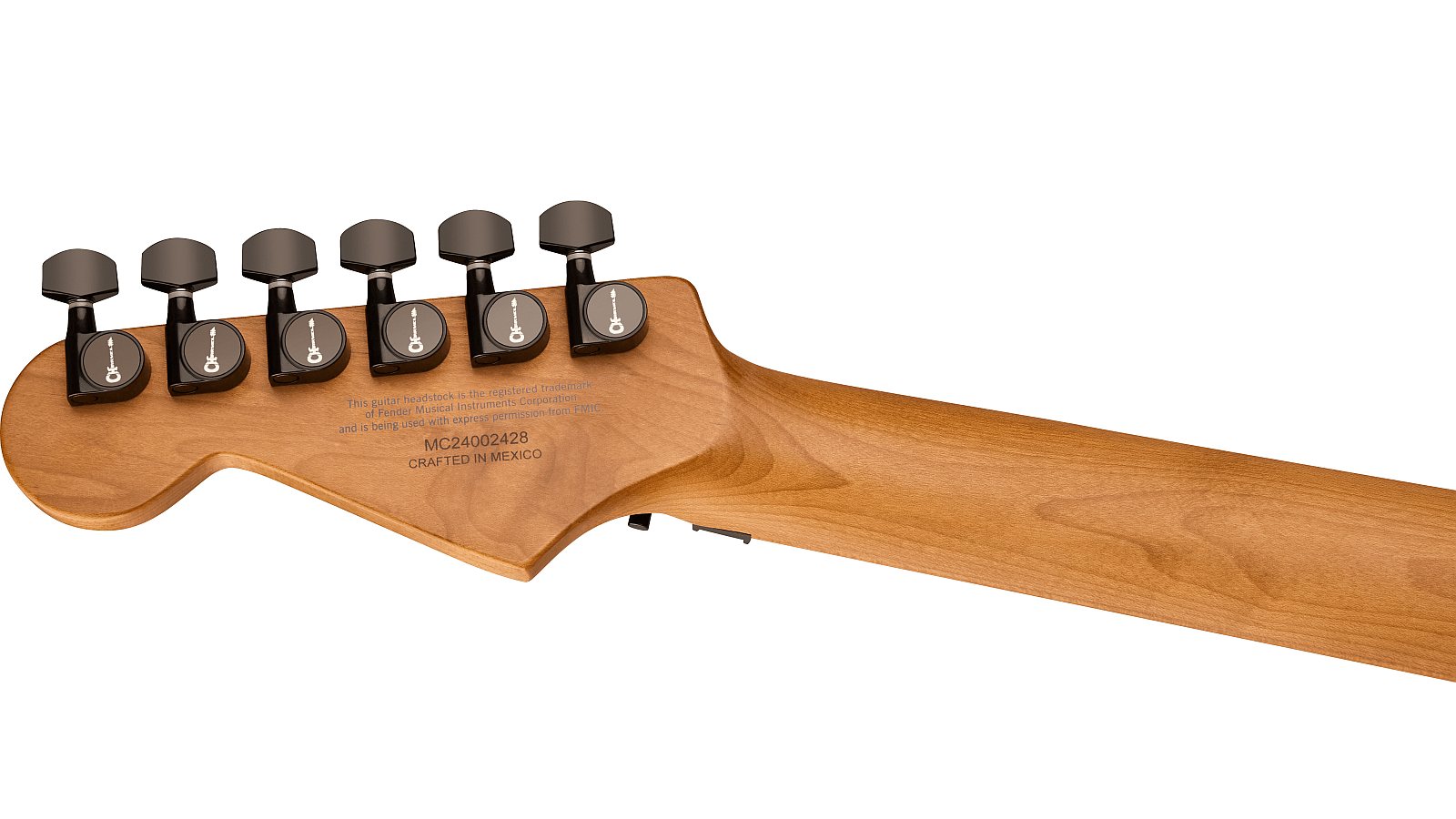 Der geschraubte Hals aus karamellisiertem Ahorn mit Graphit-Verstärkung sorgt für erstklassige Stabilität und ein angenehmes Spielgefühl – selbst bei wechselnden Bedingungen. Das ebenfalls karamellisierte Ahorn-Griffbrett mit Compound-Radius (12"-16"), 22 Jumbo-Bünden und Luminlay® Side Dots ermöglicht flüssige Soli, saubere Akkorde und beste Übersicht auch auf dunklen Bühnen.