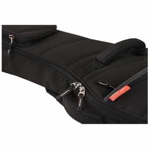 Die Taschen der Premium Serie nutzen durchweg hochwertige, strapazierfähige und leichte Materialien, so besteht das Außenmaterial z.B. aus wassergeschütztem Cordura 600. Die Bags haben eine 25 mm starke Polsterung, einen stabilen Reißverschluss und eine Halsauflage mit Klett-Fixierung für den optimalen Schutz der Instrumente. Das Design ist schlank und modern gehalten. Das große Zubehörfach bietet ausreichend Stauraum für Zubehör. Der Transport geht ebenfalls leicht von der Hand mit zwei gepolsterten Griffen sowie gefütterten und verstellbaren Rucksack-Tragegurten.