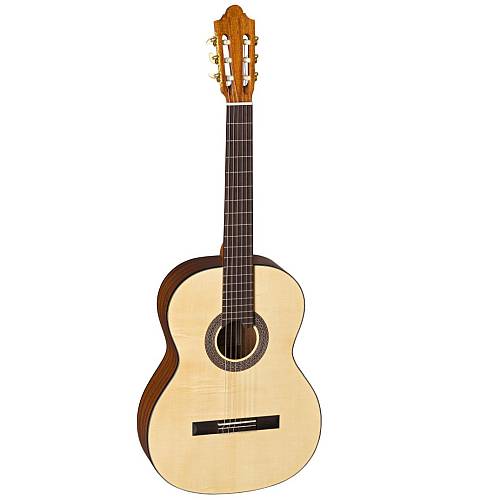 Die massive schweizer Fichtendecke sorgt für einen dynamischen, klaren Ton mit viel Ausdruck. Boden und Zargen aus Mahagoni verleihen der Gitarre einen warmen, vollen Klangcharakter. Der Cedro-Hals mit Palisander-Verstärkung liegt angenehm in der Hand und bietet hohe Stabilität. Griffbrett und Steg aus ostindischem Palisander ergänzen das edle Gesamtbild.