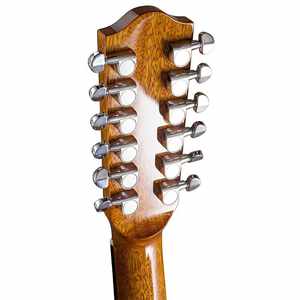 Zur hochwertigen Standardausstattung gehören ein Ebenholzgriffbrett und -steg, Knochen-Sattel und -Stegeinlage sowie verchromte, geschlossene Mechaniken. Die Hochglanzlackierung unterstreicht die elegante Holzoptik, während ein Satz Elixir Nanoweb 012–053 80/20 Bronze Saiten für langlebigen, brillanten Klang sorgt.