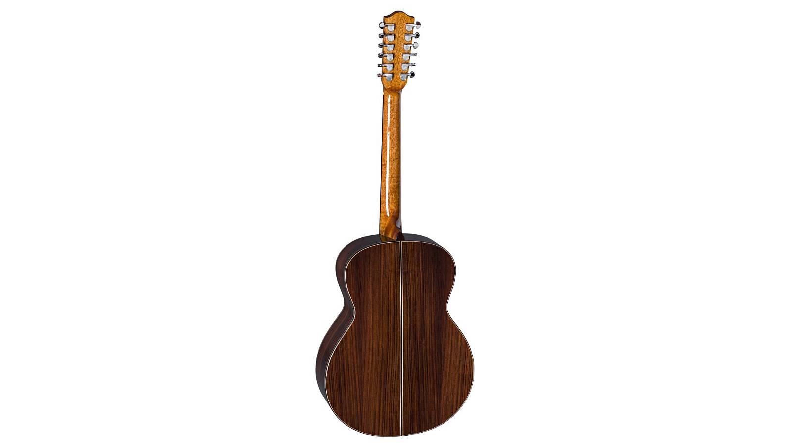 Die massive Decke aus Schweizer Hochalpenfichte sorgt für einen klaren, offenen Ton mit ausgezeichneter Resonanz. Boden und Zargen aus ostindischem Palisander verleihen der Gitarre warme Mitten, satte Bässe und strahlende Obertöne. Durch die zwölf Saiten entsteht der typische, voluminöse 12-Saiter-Sound – reich, glitzernd und voller natürlicher Tiefe. Diese Kombination macht die GA-PF-12 zur perfekten Westerngitarre für rhythmisches Strumming ebenso wie für melodiöses Picking.