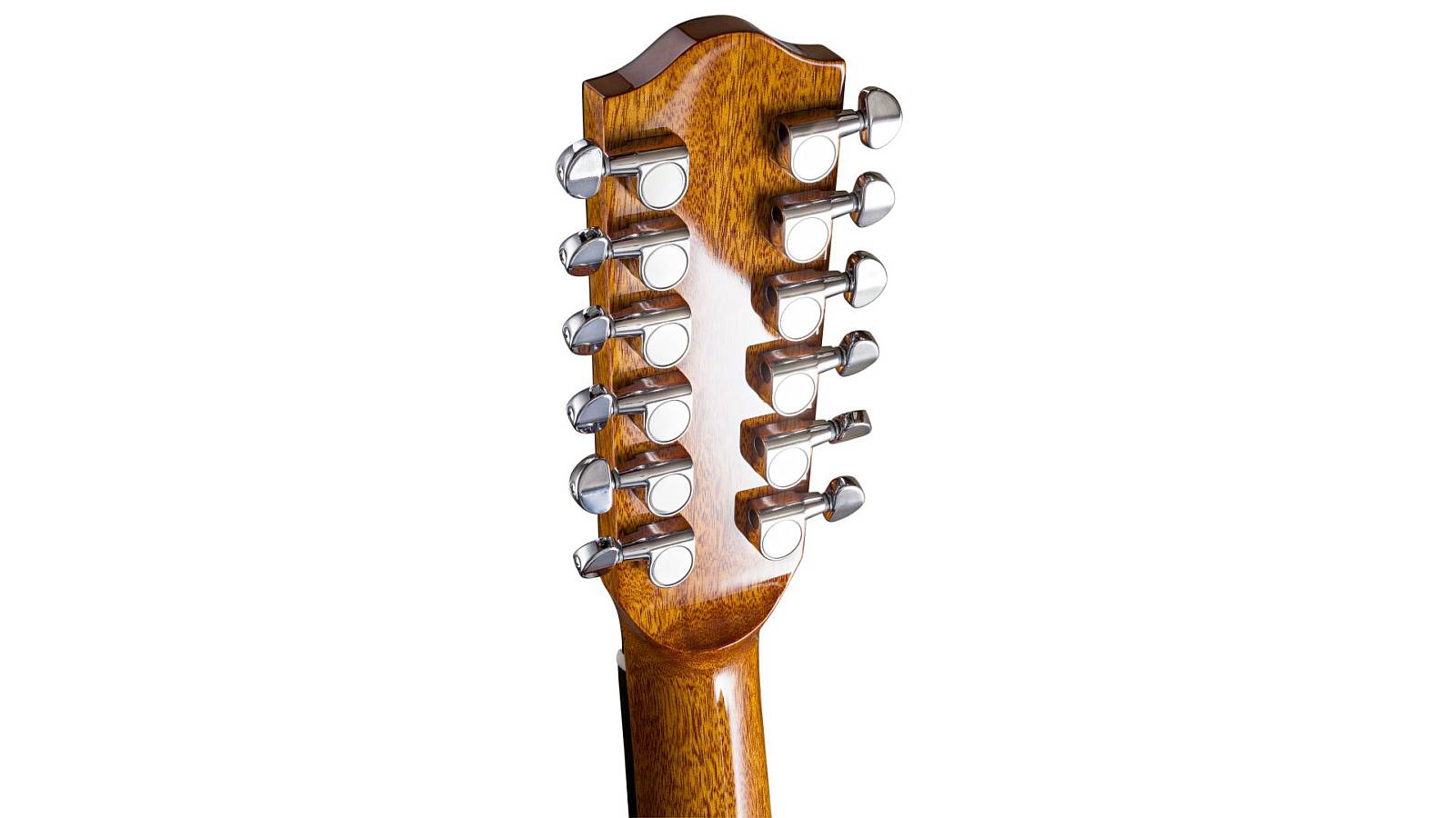 Zur hochwertigen Standardausstattung gehören ein Ebenholzgriffbrett und -steg, Knochen-Sattel und -Stegeinlage sowie verchromte, geschlossene Mechaniken. Die Hochglanzlackierung unterstreicht die elegante Holzoptik, während ein Satz Elixir Nanoweb 012–053 80/20 Bronze Saiten für langlebigen, brillanten Klang sorgt.