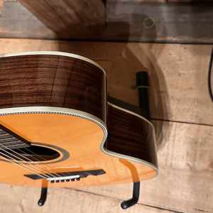 Die massive Decke aus schweizer Alpenfichte sorgt für eine klare Ansprache, brillante Höhen und eine beeindruckende Dynamik. Boden und Zargen aus ostindischem Palisander verleihen dem Ton Wärme, Tiefe und Charakter. Der Hals aus Cedro mit 2-Wege-Halsstab sorgt für Stabilität und eine komfortable Bespielbarkeit. Griffbrett und Steg aus edlem Ebenholz garantieren ein direktes Spielgefühl und präzise Tonübertragung.