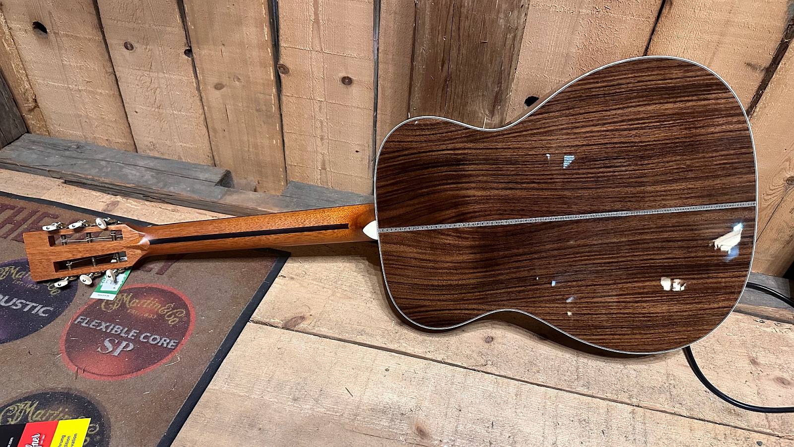 Die massive Decke aus schweizer Alpenfichte sorgt für eine klare Ansprache, brillante Höhen und eine beeindruckende Dynamik. Boden und Zargen aus ostindischem Palisander verleihen dem Ton Wärme, Tiefe und Charakter. Der Hals aus Cedro mit 2-Wege-Halsstab sorgt für Stabilität und eine komfortable Bespielbarkeit. Griffbrett und Steg aus edlem Ebenholz garantieren ein direktes Spielgefühl und präzise Tonübertragung.
