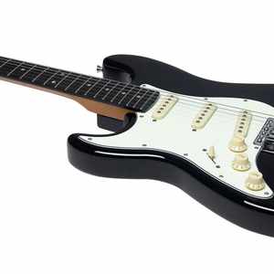 Trotz ihres sehr günstigen Preises wurde der Verarbeitung der ST300 größte Aufmerksamkeit geschenkt, um den Anfängern eine attraktive und hervorragend verarbeitete Gitarre zu bieten. Der Korpus, gefertigt aus Pappelholz für gute Robustheit, wird durch einen glänzenden Lack hervorgehoben. Der vierfach verschraubte Ahornhals ist stabil und angenehm, gekrönt von einem Griffbrett aus Eko WPC (Wood Polymer Composites), das dem hellen Klang des Ahorns zusätzliche Wärme und Stabilität verleiht.