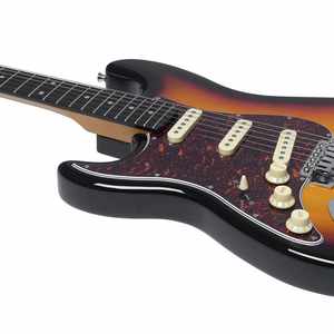 Die ST300 präsentiert die zeitlose Form, die ihr Design inspiriert hat: die charakteristische doppelte Aussparung, die einen ausgezeichneten Zugang zu den oberen Bünden ermöglicht, kombiniert mit drei Single-Coil-Pickups, einem bekannten Tremolo-Block und einer vintage aussehenden Schutzplatte. Diese klassische Konfiguration wurde vom italienischen Hersteller Eko übernommen, um die ST300 zu einer attraktiven und ergonomischen Gitarre mit Retro-Look zu machen, die vor allem für Anfänger äußerst vielseitig ist.