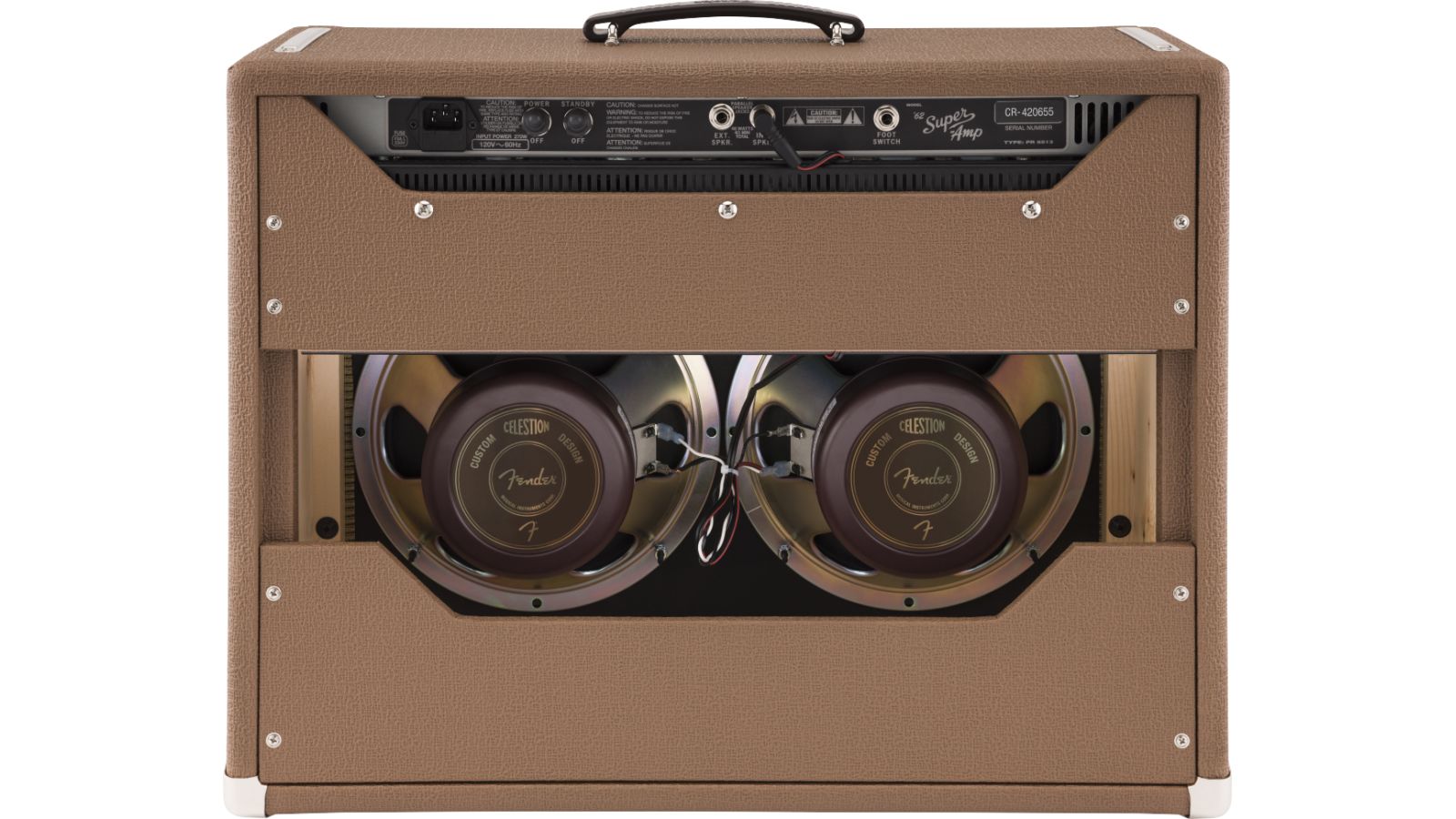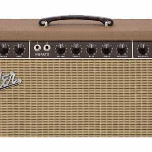 Das erste Fender Brown Panel Modell ist der '62 Super. Im cleanen Modus klingt er warm und klar. Wenn man ihn aufreißt, entwickelt er einen schönen lebendigen Overdrive mit viel Strahlkraft. Und er hat ein besonderes Feature der Original-Ära an Bord: das Phase Shifting Harmonic Tremolo. Dabei wird das Audiosignal in zwei Frequenzbereiche aufgeteilt und gegeneinander moduliert, ein phantastischer musikalischer Effekt. Zwei 6L6 Endstufen-Röhren schicken das Signal mit 40 Watt an die beiden 10" Celestion Custom Design Lautsprecher, damit eignet sich der '62 Super für Aufnahmen ebenso wie für die Bühne.