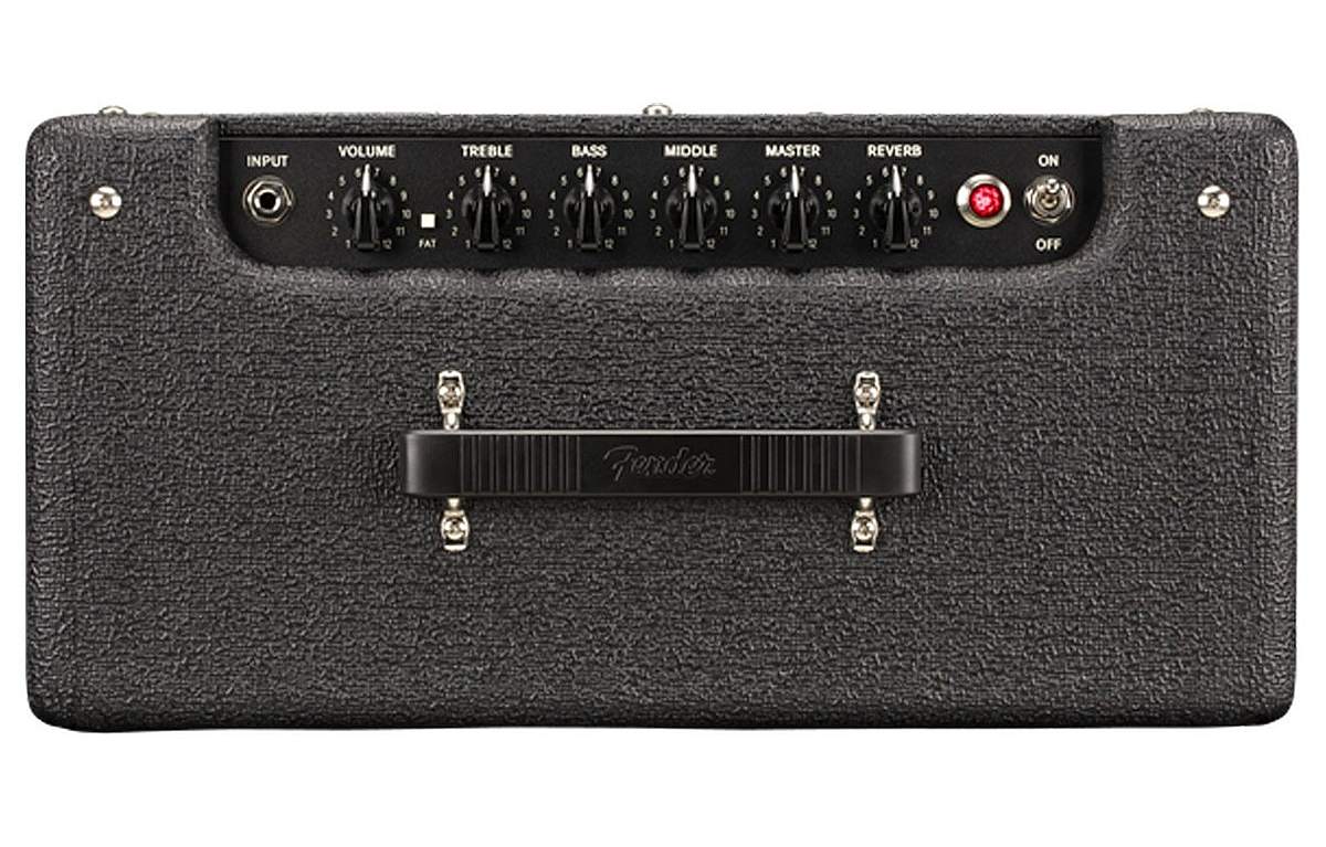 - Regler: Reverb, Master, Middle, Bass, Treble, "Fat"-Schalter, Volume