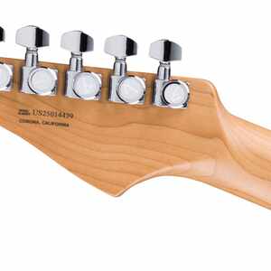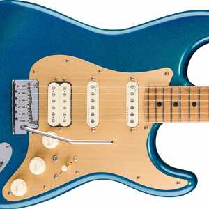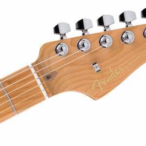 Im Inneren sorgen zwei Ultra II Noiseless Hot Strat Pickups in Kombination mit einem Haymaker Humbucker für ein breites Klangspektrum – von kristallklaren Cleansounds bis hin zu durchsetzungsstarken Leads – ganz ohne Brummen. Unser patentierter S-1-Schalter teilt den Haymaker-Tonabnehmer intelligent auf und sorgt so für noch mehr Klangvielfalt. Der Ultra Blaster-Vorverstärker liefert per Knopfdruck einen warmen und druckvollen dB-Boost. Weitere Merkmale für den professionellen Tourbetrieb sind das synchronisierte 2-Punkt-Tremolo American Ultra mit Einsteckhebel, polierte Edelstahl-Saitenreiter, ein Block aus kaltgewalztem Stahl, Deluxe-Locking-Mechaniken, Soft-Touch-Knöpfe und ein einlagiges, eloxiertes Aluminium-Schlagbrett.