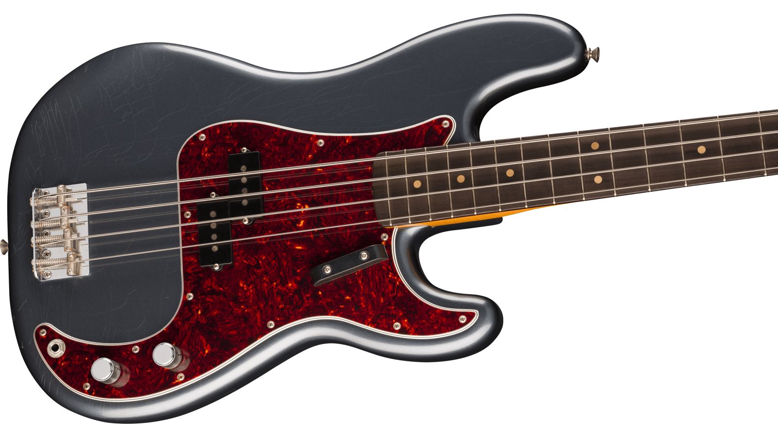 Der Vintera II Road Worn '60s Precision Bass sieht mit seinen authentischen Vintage-Farben und dem Road Worn Nitrolack-Finish nicht nur aus wie ein liebevoll abgerockter Klassiker, er fühlt sich auch so an. Der Look und die Haptik erinnern an gut eingespielte Fender Vintage-Bässe. Der „60s C” Ahornhals trägt ein Palisander-Griffbrett im 7.25" Radius mit Vintage Tall Frets, er liegt bequem in der Greifhand und spielt sich schön flüssig. Unter der Haube sitzt ein '60s Split-Coil Precision Pickup im Vintage-Stil, er erzeugt den begehrten dynamisch-kraftvollen Basston, für den Fender weltberühmt ist. Die Saiten laufen über eine Vintage-Bridge mit vier Saitenreitern und Vintage-Mechaniken, das sorgt für hohe Stimmstabilität und blitzsaubere Intonation.