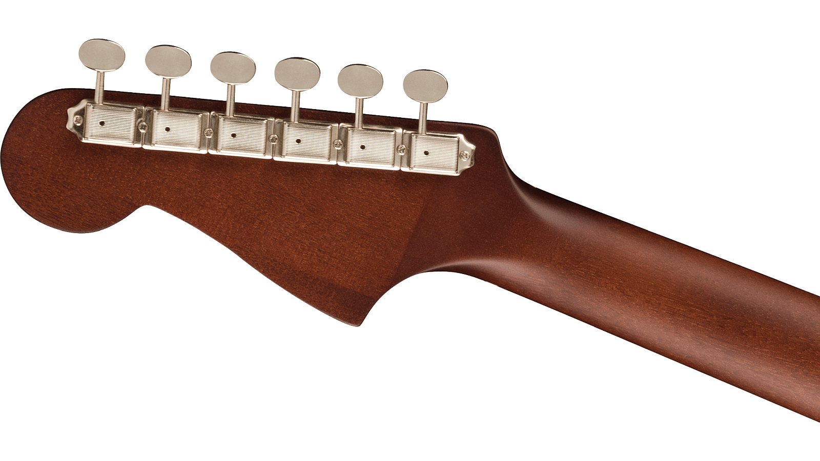 Die Fender Newporter Player trägt den berühmten California-Vibe in sich. Man erkennt sofort die Verwandtschaft zu den legendären Fender E-Gitarren – vom schlanken Hals bis zur charakteristischen Kopfplatte mit 6er Mechaniken. Das auffällige Tidepool-Finish sorgt für den gewissen Wow-Effekt – mutig, modern und selbstbewusst.