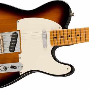 Die Vintera II '50s Nocaster entfaltet mit Erlekorpus und Ahornhals einen resonanzstarken klassisch-klaren Fender Ton. Das U-Halsprofil basiert auf unseren Hälsen der frühen 50er Jahre und liegt angenehm dick in der Greifhand. Der Griffbrettradius von 7.25" in Verbindung mit Vintage Tall Frets macht den Hals entspannt spielbar, so gelingen präzise Bendings und Vibrato-Effekte mühelos. Zwei Vintage-Style 50s Tonabnehmer liefern einen kristallklaren, glockig-prägnanten Ton mit metallischer Schärfe und viel Wärme. Das berühmte 50er Jahre „Twang” entsteht durch die Saitenführung über eine Bridge im Vintage-Stil mit drei „Barrel” Messing-Saitenreitern. Damit die Stimmung stabil bleibt, wurde die Vintera II '50s Nocaster mit historisch gestalteten Tunern und einer modernen Gear Ratio ausgestattet.
