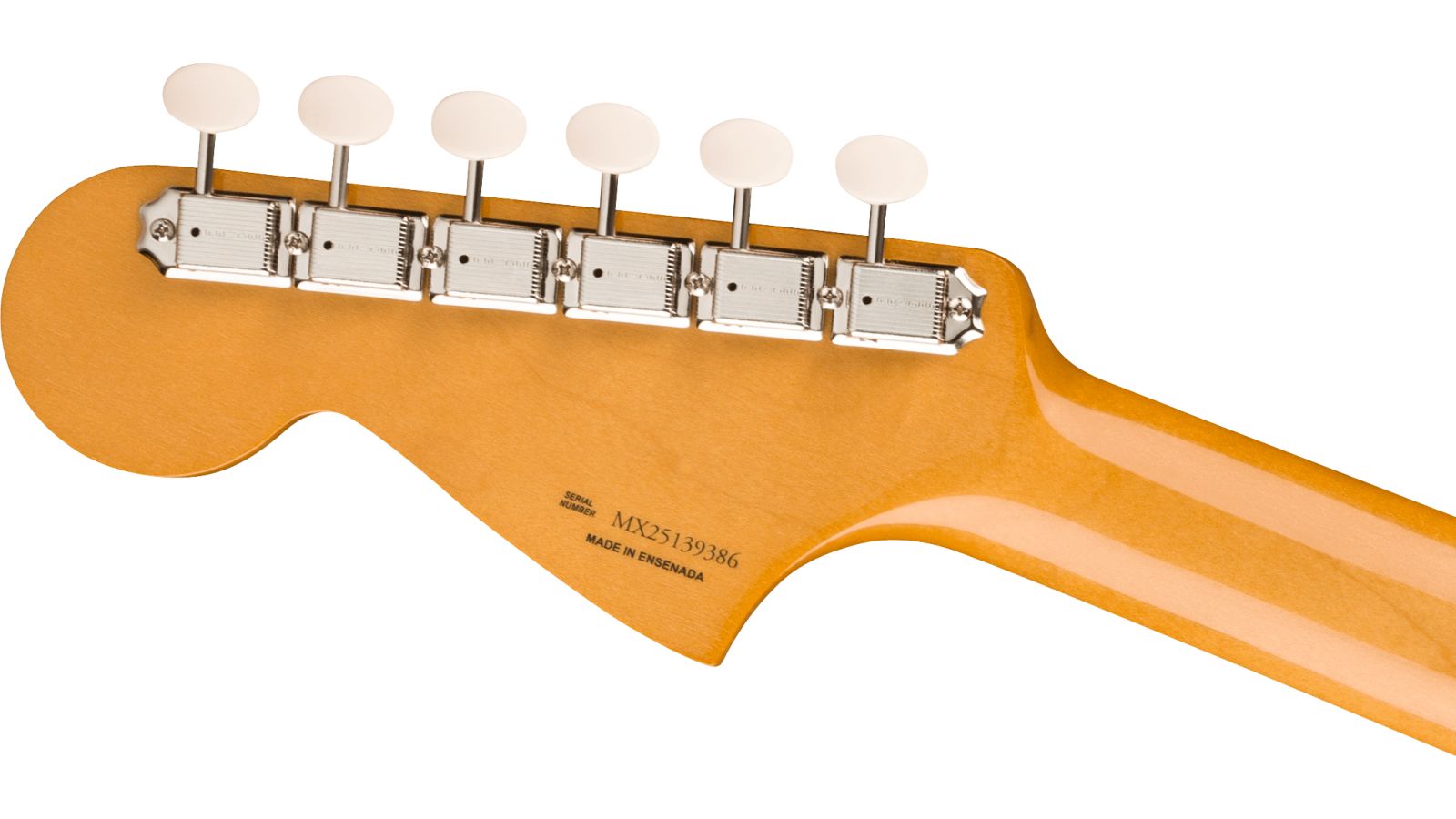 Die Vintera III Mid ’60s Mustang kombiniert einen Erlekorpus, Ahornhals im „Mid ’60s C“-Profil und ein Palisandergriffbrett (7.25" Radius, Vintage Tall Frets) für komfortables Spielgefühl. Zwei Mid ’60s Single-Coils liefern den typisch klaren, warm-knackigen Fender-Sound mit markanten Mitten. Ergänzt wird das Modell durch ein Vintage „Floating“ Tremolo und stabile Vintage-Mechaniken.