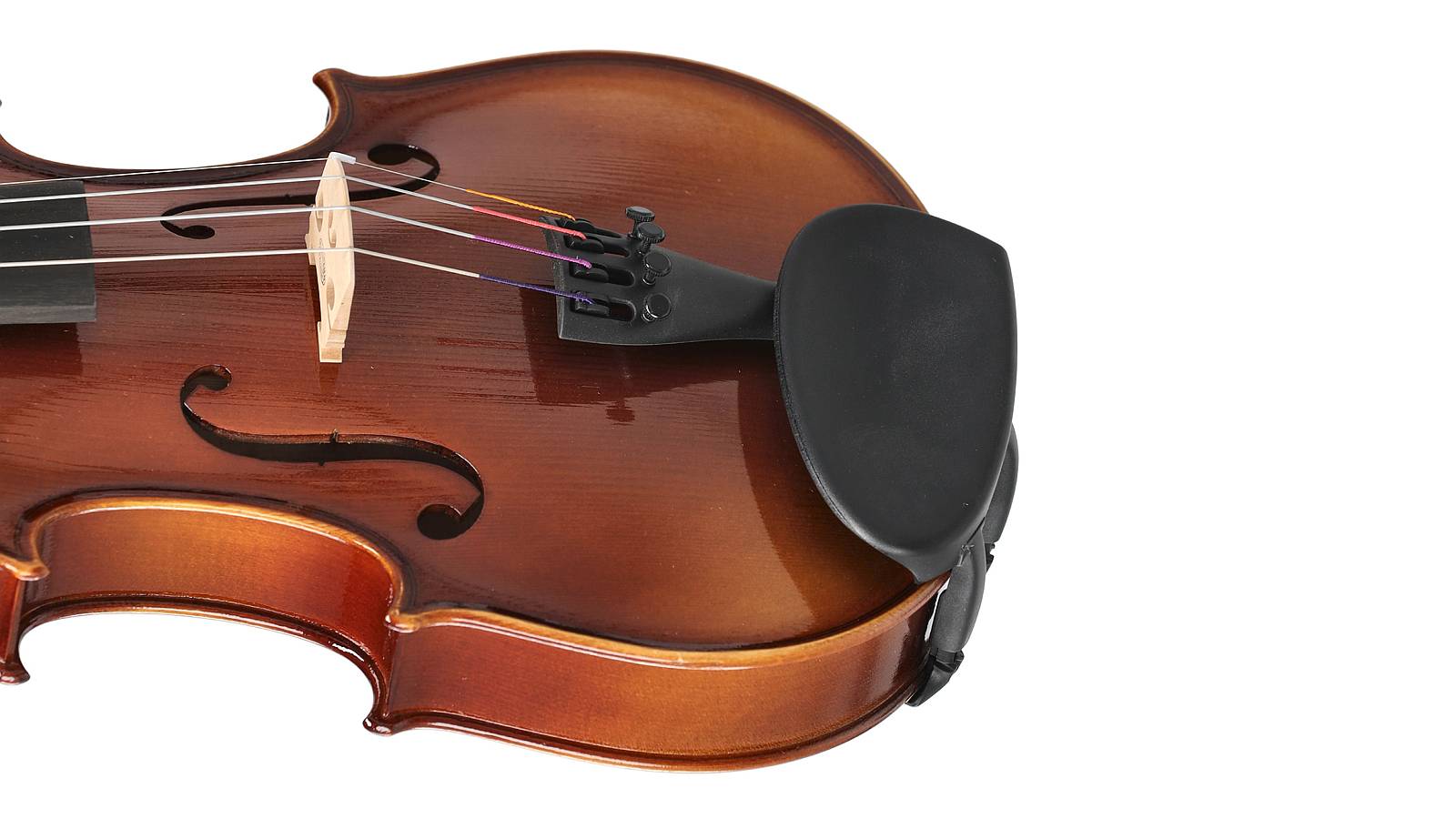 Für komfortables und feines Stimmen sind sowohl Wittner Feinstimmsaitenhalter als auch Wittner Feinstimmwirbel verbaut – ideal für zuverlässige Funktion und stimmstabile Performance. Bestückt ist die Violine mit Larsen Aurora Saiten, die sich durch klare Ansprache und ausgewogene Klangfarben auszeichnen. Ein Wittner Kinnhalter sorgt zusätzlich für angenehmen Halt und ergonomisches Spielgefühl.