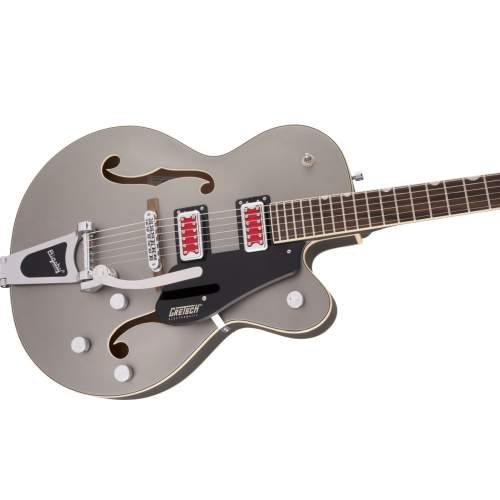 Die neue G5410T Hollow-Body Gitarre mit Bigbsy ist ideal für deinen Rock'n'Roll und Rockabilly Sound. Die zwei Gretsch Black Top Filter Tron Pickups sorgen für den typischen 50er Jahre Punch.
