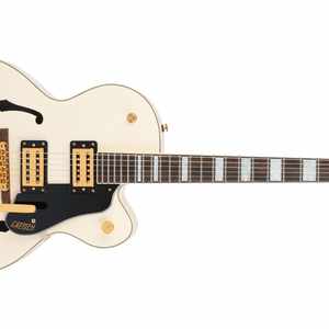 Die Gretsch G2420TG Streamliner Hollow Body Single-Cut with Bigsby Limited Edition wurde für moderne Gitarristen entwickelt, die nach etwas Außergewöhnlichem suchen. Mit glänzender Gold-Hardware, metallenen G-Arrow-Reglerknöpfen und Perloid Big Block Griffbretteinlagen ausgestattet, vereint die G2420TG moderne Klangcharakteristik, überarbeitete Elektronik und einen authentisch eleganten Stil – und präsentiert damit die neueste Interpretation des legendären „That Great Gretsch® Sound!“.