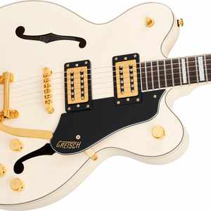 Die limitierte Gretsch G2622TG Streamliner kombiniert modernen, druckvollen Sound mit auffälliger Gold-Optik und hochwertigen Designdetails. Sie richtet sich an anspruchsvolle Gitarristen, die hohe Leistung, eigenständigen Stil und starke Bühnenpräsenz suchen – ohne auf den klassischen Gretsch-Charakter zu verzichten.