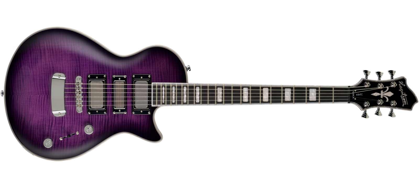 Flaming Hot in Sound & Finish. Der durchschlagende Erfolg der Ultra Max in Vinterny White beschert uns diese Sondermodelle. Die Decke in atemberaubendem Riegelahorn , wird durch die Ultra Max typische deckend schwarze Rückseite kongenial ergänzt. Mit den 3 Humbuckern im Foil Optik (Lundgren Design #02 Hals, H-52 Mitte, Lundgren Design #05 Steg), 5-Wege Schalter (inklusive Auto Coil Split in den Zwischen Positionen), sowie globaler Bass Cut Regelung, bietet diese Single Cut Schönheit eine bislang ungeahnte Klangvielfalt im Hagstrom Programm an.