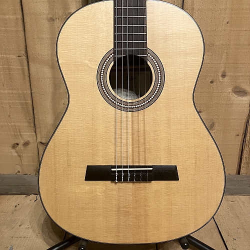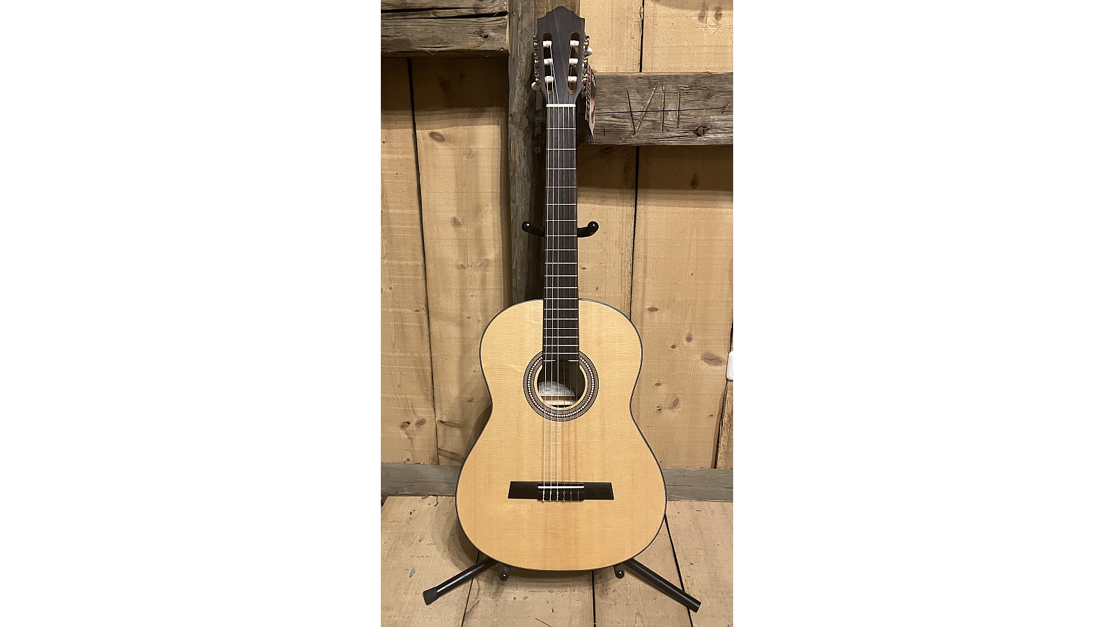 Diese Konzertgitarre überzeugt durch ihre erstklassige Materialwahl. Die massive Fichtendecke sorgt für einen klaren, resonanten Ton, während Boden und Zargen aus Mahagoni dem Klang Volumen und Wärme verleihen. Das Griffbrett aus Palisander bietet eine angenehme Haptik und ermöglicht präzises Greifen, was besonders für Gitarrenschüler von Vorteil ist. Das Finish verleiht der Gitarre eine elegante Optik und schützt das Holz gleichzeitig vor Abnutzung.