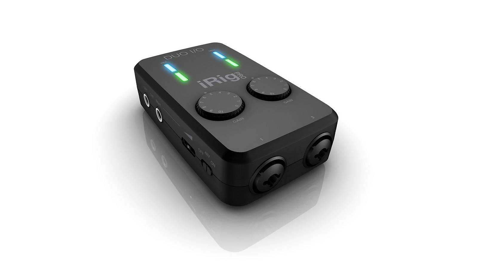 Das iRig Pro Duo I/O bietet zwei analoge Neutrik™-Kombibuchsen (XLR/6,35 mm) für Mikrofone, Gitarre, Bass, Keyboards, Synthesizer oder Line-Signale.