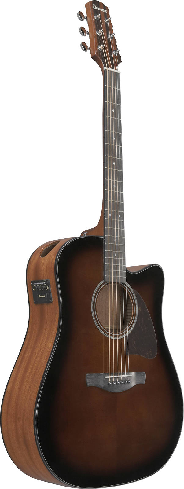 Die Advanced-Acoustic-Serie bietet einen innovativen, kraftvollen Klang mit großer Dynamik und hohem Spielkomfort. Sie kombiniert eine massive Sitka-Fichtendecke für ein breites Frequenzspektrum mit Sapele Zargen und Boden für warmen Klang. Der Low-Oval-Hals aus Okoume und das Purpleheart-Griffbrett sorgen für einfaches Spiel und einen charaktervollen Ton. Der Ibanez T-Bar Undersaddle Pickup überträgt den Sound, unterstützt vom AEQ-TP2-Preamp. Besondere Merkmale wie das A.I.R.port verbessern das Monitoring, und der Grand-Dreadnought-Korpus bietet mehr Volumen und kraftvolle Tiefen. Weitere Highlights sind die X-M-Bracing-Konstruktion, eine verjüngte Kopfplatte und der Advanced Access Cutaway für einfachen Zugang zu hohen Lagen.