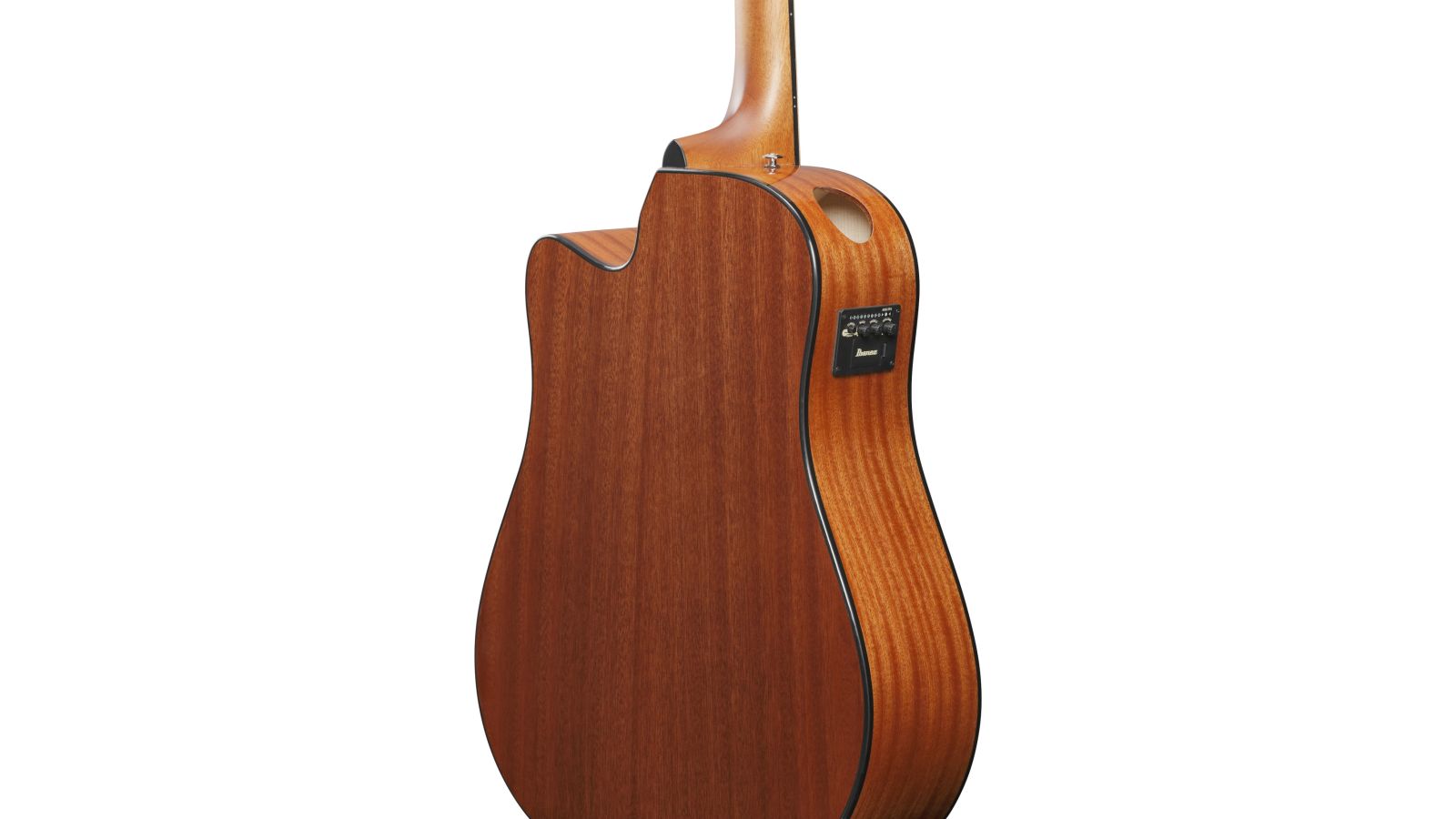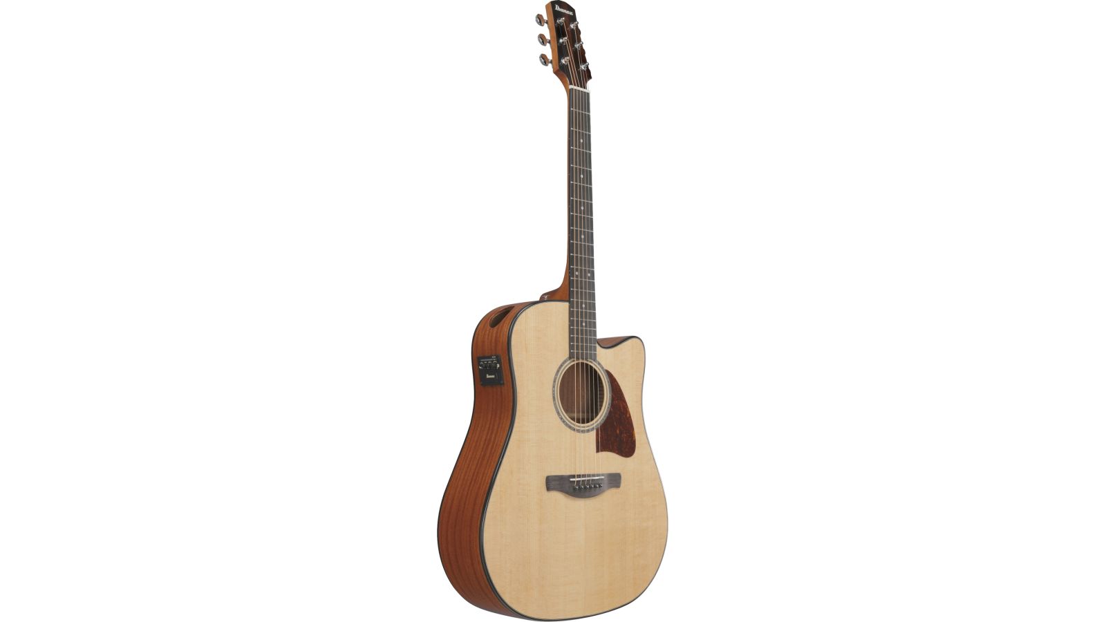 Die Advanced-Acoustic-Serie bietet einen reicheren, brillanteren Klang mit großer Dynamik und hohem Spielkomfort. Sie kombiniert eine massive Sitka-Fichtendecke für ein breites Frequenzspektrum mit Sapele Zargen und Boden für warme Töne. Der Low-Oval-Hals aus Okoume und das Purpleheart-Griffbrett bieten exzellenten Spielkomfort und einen charaktervollen Klang. Der Ibanez T-Bar Undersaddle Pickup und der AEQ-TP2 Preamp sorgen für eine präzise Klangübertragung. Besondere Merkmale wie das A.I.R.port und der Grand-Dreadnought-Korpus bieten klares Monitoring und mehr Volumen. Die X-M-Bracing-Konstruktion, die verjüngte Kopfplatte und der Advanced Access Cutaway sorgen für exzellente Dynamik und einfachen Zugang zu hohen Lagen.