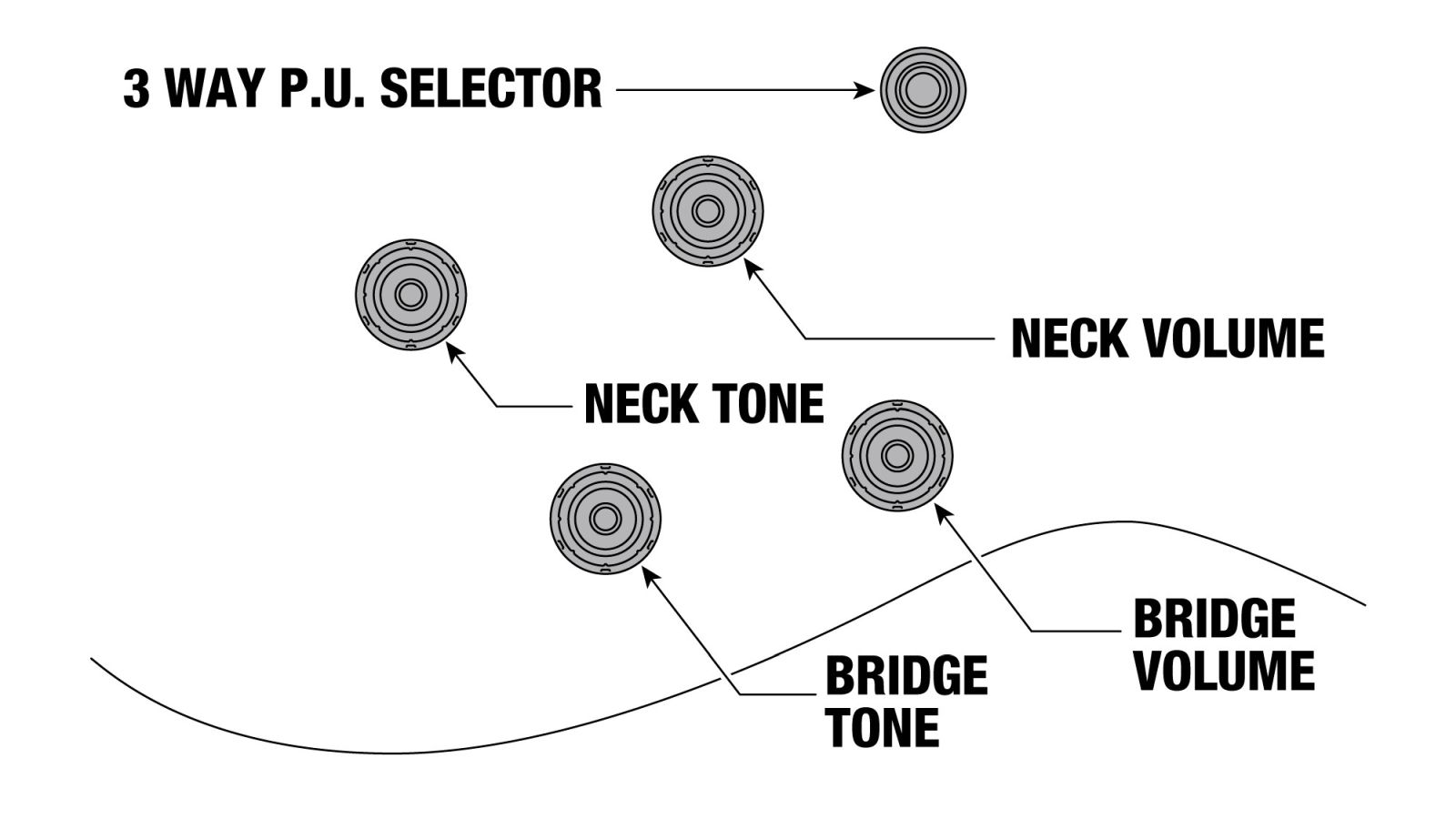 Schaltungselemente: 2 Lautstärke, 2 Klang, Dreiwegeschalter