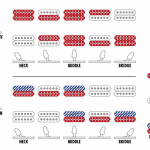 - Schaltungselemente: 1 Lautstärke, 1 Klang, Fünfwegeschalter