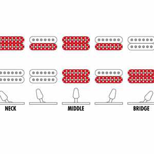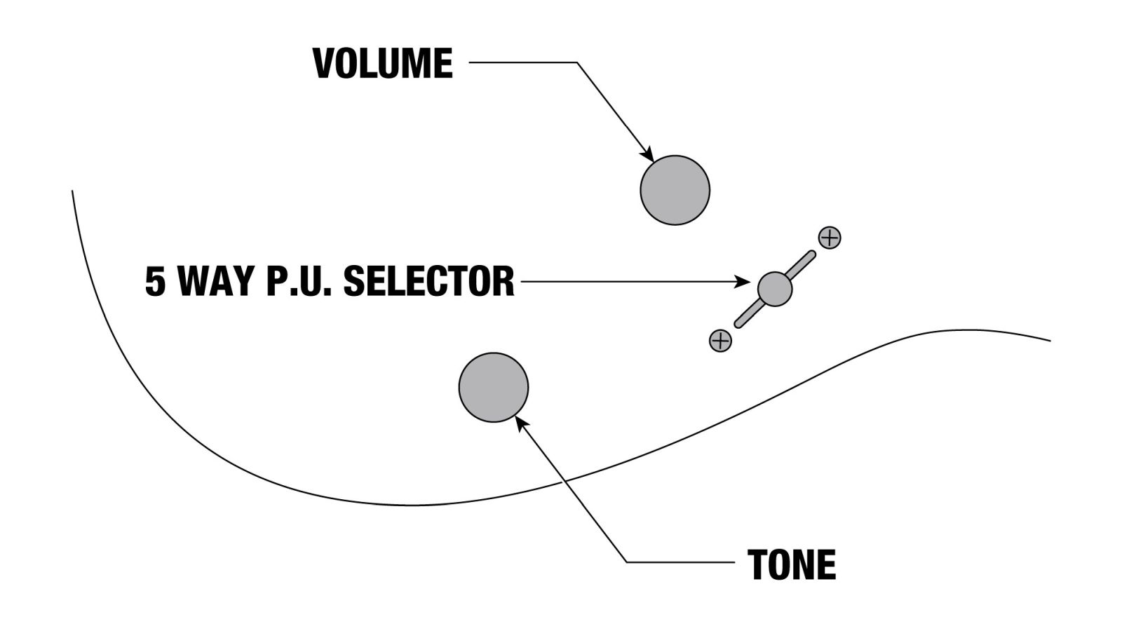 - Schaltungselemente: 1 Lautstärke, 1 Klang, Fünfwegeschalter
