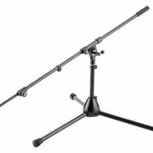 Niedriges Mikrofonstativ mit Alu-Druckguss-Sockel und extra langem, ausziehbarem Schwenkarm für Spezialanwendungen.