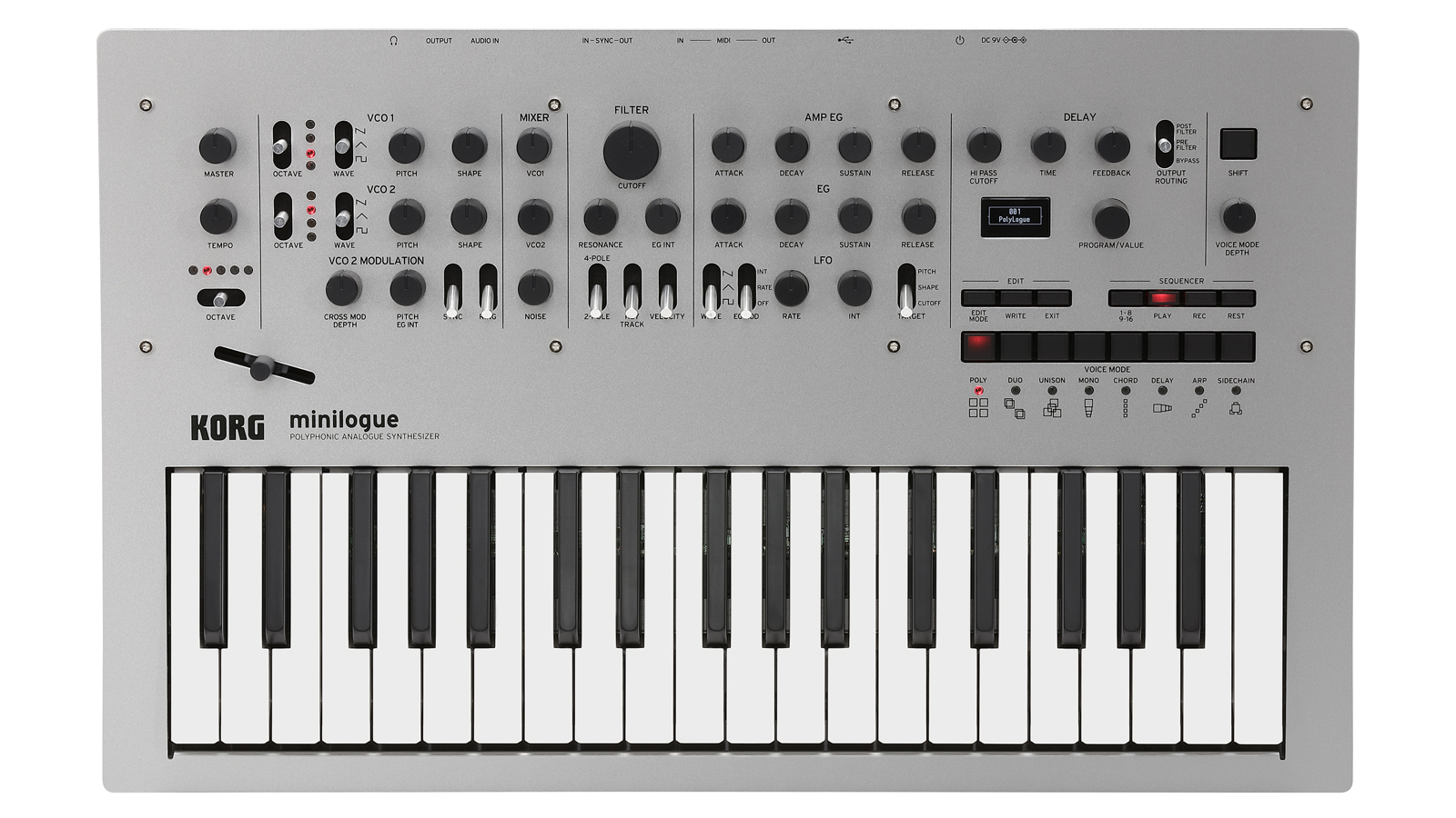 Mit neu entwickelten analogen Synthesizerschaltungen präsentiert sich der minilogue als voll programmierbarer polyphoner Synthesizer zum Schnäppchenpreis – da muss man als Musiker einfach „Ja bitte“ sagen! Mit dem minilogue lassen sich herrlich fette Sounds erzielen, die nur mit einer analogen Klangerzeugung möglich sind. Falls die Ideen nicht spontan aus Ihnen hervorsprudeln, können Sie Ihrer Inspiration mit dem polyphonen Step- und Motion-Sequenzer, dem von einem Bandecho inspirierten Delay-Effekt, unzähligen Funktionen für die Klangverbiegung und Filteroptionen auf die Sprünge helfen. Bei Bedarf zeigt die Oszilloskopfunktion die jeweils erzeugte Wellenform im Display an. Fest steht jedenfalls, dass der Spaßfaktor und die Leistungsfähigkeit des minilogue kaum noch zu überbieten sind. Nennen wir ihn daher einfach den Beginn einer neuen Analog-Generation für Musiker aller Couleur.- Flexibler, leistungsfähiger und vierstimmig polyphoner Synthesizer
