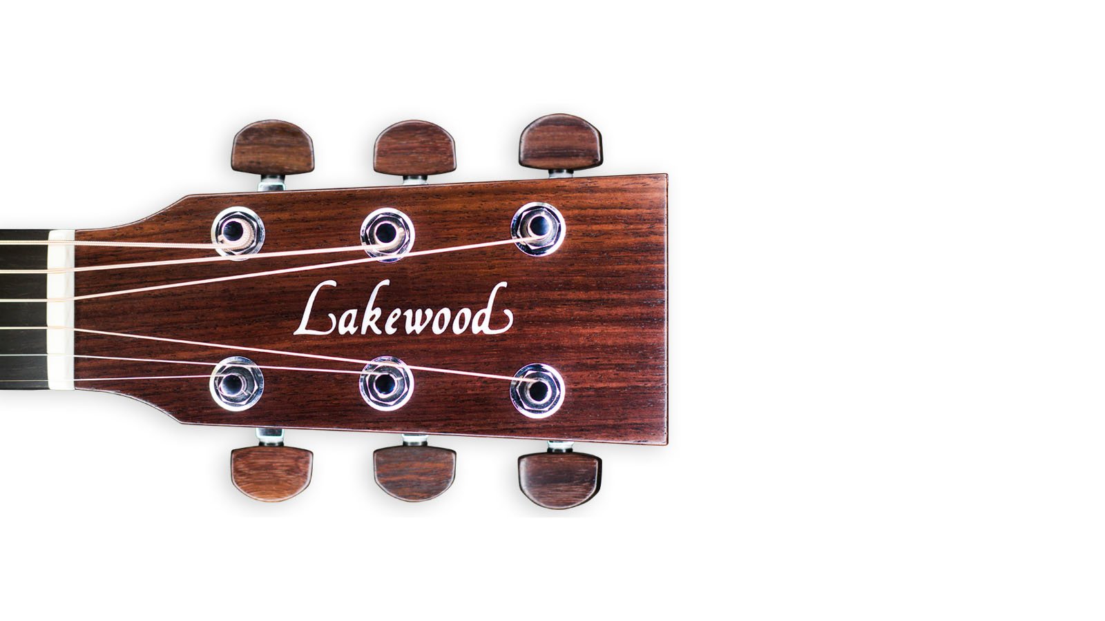 - Kopfplatteneinlagen: Lakewood Logo aus weißem Perlmutt