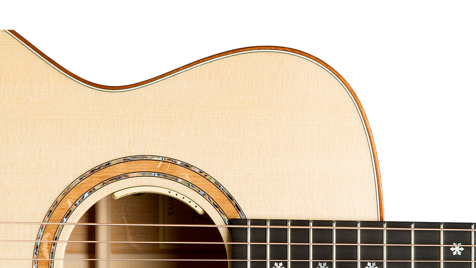 - Schalllochverzierung: Holzkern mit Abaloneringen