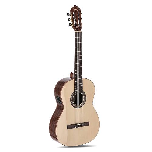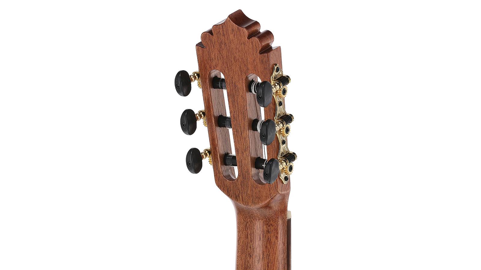 Alle Instrumente der ACADEMIA-Serie werden in Europa handgefertigt. Der Mahagoni-Hals, das Ovangkol-Griffbrett, der handgefeilte Knochensattel sowie der wasserbasierte ECO-Lack zeigen die Liebe zum Detail. Diese hochwertige Verarbeitung sorgt dafür, dass sich die Gitarre nicht nur gut anhört, sondern sich auch hervorragend spielen lässt.