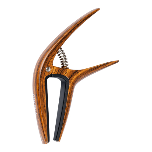 Kapodaster in Walnuss Design passt zu jeder naturfarbenen Western- oder Konzert-Gitarre