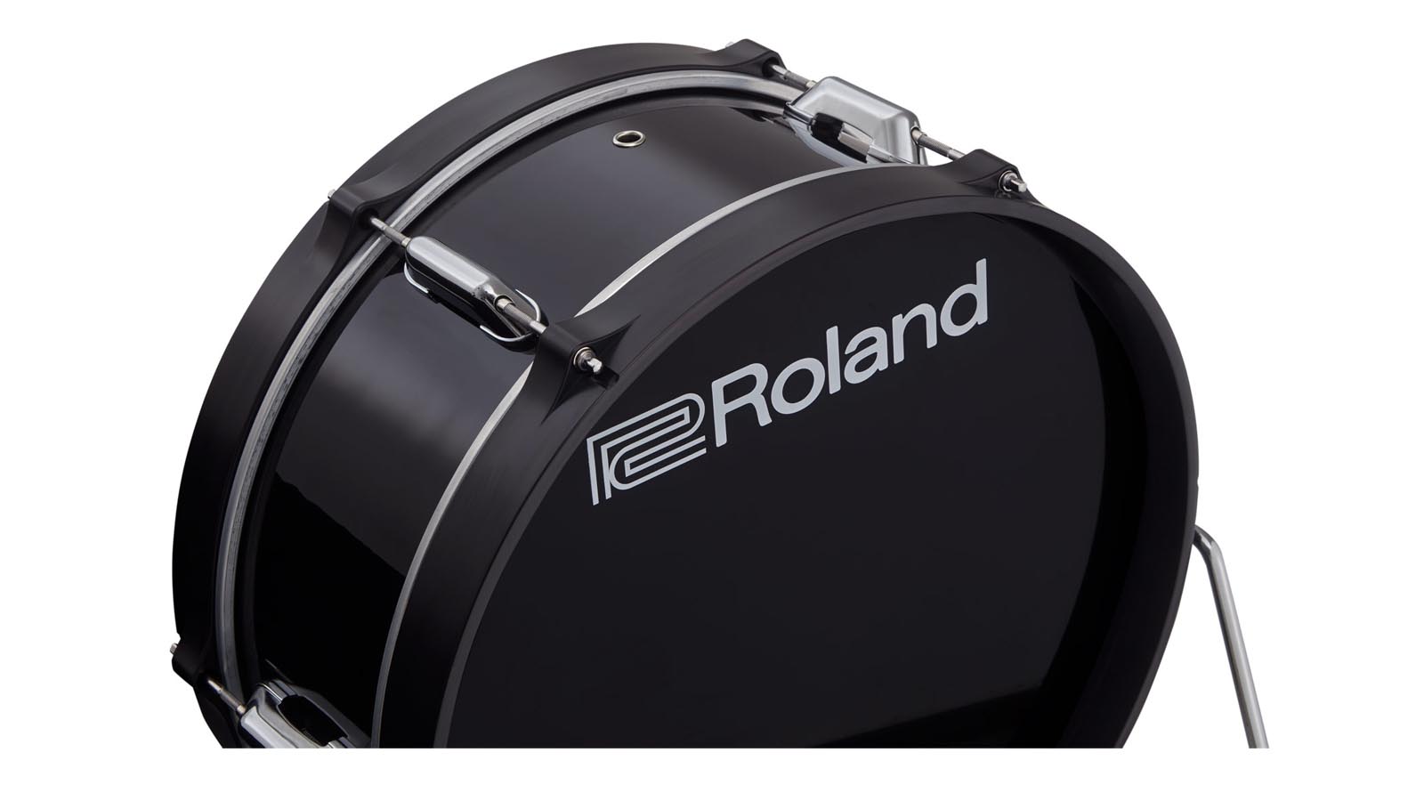 Die 18" KD-180L-BK Kickdrum kombiniert mit ihrem flachen Holzkessel den Look und das Spielgefühl der V-Drums Acoustic Design Serie im kompakten Format. Der ins Gewebefell integrierte Pad-Sensor lässt sich wie ein akustisches Fell montieren. Das präzise abgeleitete Luftvolumen sorgt für ein authentisches Pedalgefühl, während die Roland Trigger- und Sensortechnologie jeden Schlag exakt erfasst und realistisch wiedergibt.
