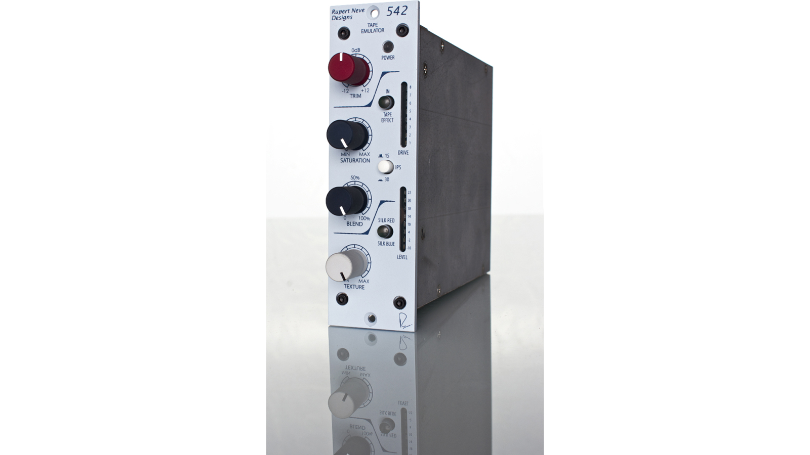 Der Portico 542 ist in der Lage, den warmen Sound, den man von einem analogen Tonband kennt, zu reproduzieren. Damit kann der oft kalte Klang eines digitalen Signals eliminiert werden. Er ist ausgestattet mit einem Trim Regler, einem „Bandsättigungsregler“, einer Umschaltung der Band-Charakteristik von 15 lPS auf 30lPS und einem Blend-Regler, der zwischen Pre- und Post-Tape stufenlos geregelt werden kann. Darüber hinaus wurde im 542 die Neve-typische Silk-Funktion (Silk Red und Silk Blue) integriert, deren Intensität stufenlos über das Texture-Poti verändert wird.