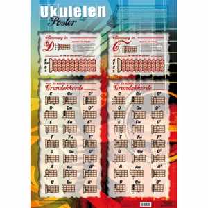 Die einfachen Grundakkorde in den beiden wichtigsten Stimmungen: D (a-D-F#-B) und C (g-C-E-A). Mit Stimmdiagramm und Übersicht der Töne auf dem Griffbrett: So hat der Ukulelespieler immer alles im Blick und kann sofort loslegen!