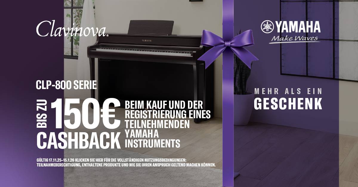 Alle Kunden, die im Zeitraum vom 17.11.2025 bis einschlieĂźlich 15.01.2025 diesen Artikel kaufen, erhalten einen Cashback direkt von Yamaha!