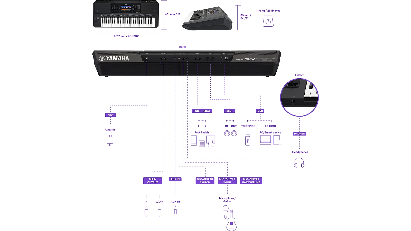 Specs Yamaha PSR-SX720+ Keyboard Bluetooth