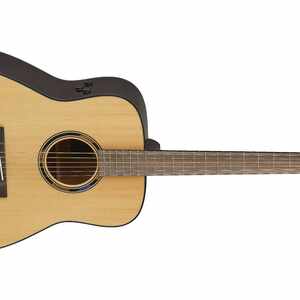Der Dreadnought-Korpus liefert dabei den typischen kraftvollen und ausgewogenen Sound, den man von einer Westerngitarre erwartet. Die massive Fichtendecke sorgt für klare Höhen und eine dynamische Ansprache, während Boden und Zargen aus Mahagoni warme Mitten und eine angenehme Tiefe hinzufügen. Das Ergebnis ist ein vielseitiger Klang, der sich für viele Musikstile eignet.