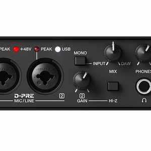 - Eingänge: 2 Combo-Eingänge (XLR/TRS) mit D-PRE Mikrofonvorverstärkern