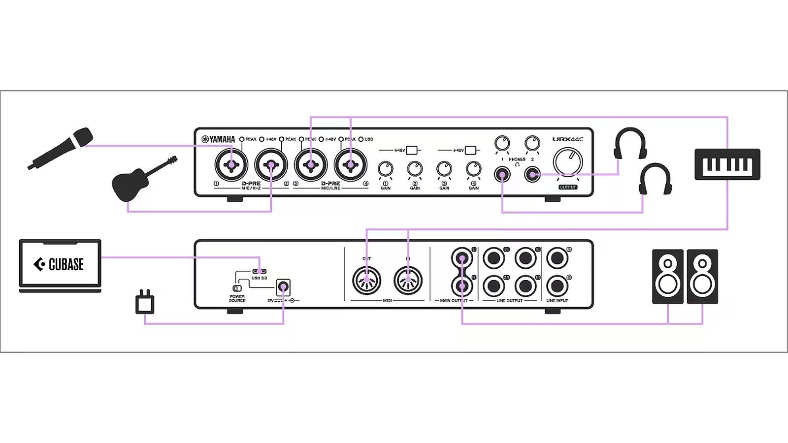 Mit 32-Bit/192 kHz Audioauflösung und Yamahas bewährten D-PRE Preamps bietet das URX44C eine außergewöhnlich klare, dynamische Klangwiedergabe.